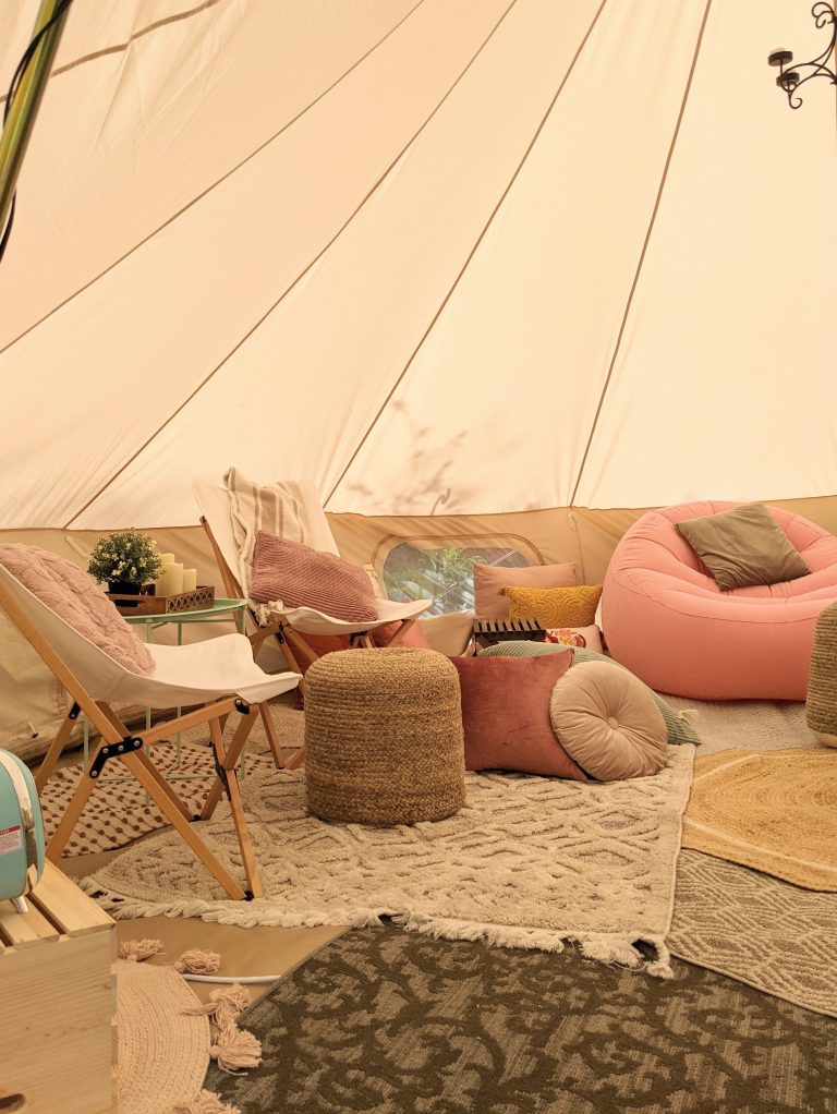 Our beautiful glamping lounge tent is the ideal spot to relax and make memories. Perfect for birthdays and girl’s nights. 🎉